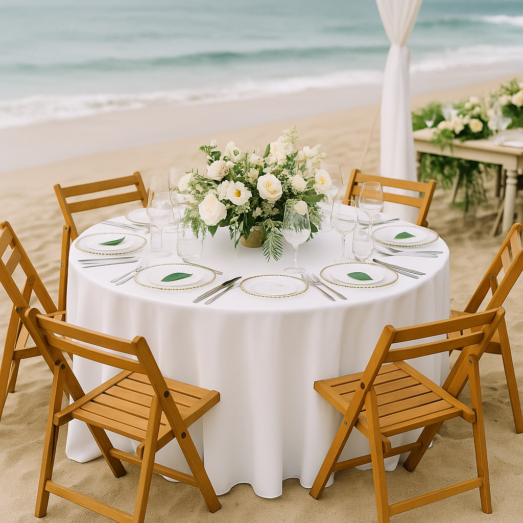 After 10+ years in the wedding business, we know a couple of things about what you really need to make a successful event on the beach stress-free and gorgeous. You can take advantage of this expertise and create your own vision using our carefully curated bundles for your dream event. Bundles can be picked up or delivered for a charge. See you soon!